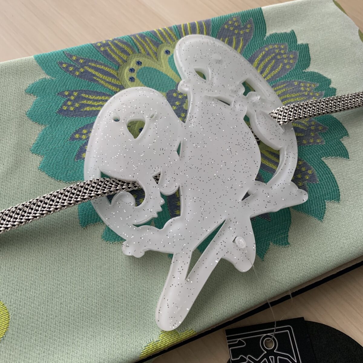 帯プレート小鳥/ミルキーホワイト・シルバーラメ